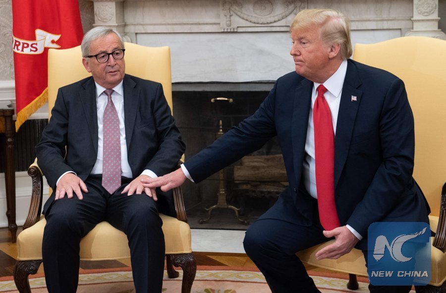 WASHINGTON, July 25 (Xinhua) -- The latest deals between U.S. President Donald Trump and visiting European Commission President Jean-Claude Juncker might be the first step to ease transatlantic trade conflicts, but they failed to resolve their substantial differences, U.S. experts said on Wednesday.