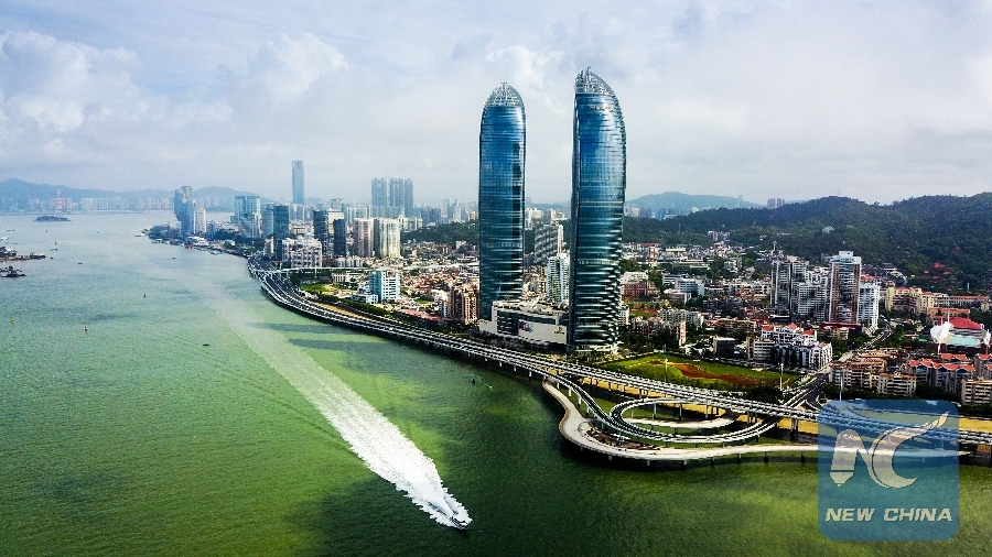 Aerial photo taken on Aug. 24, 2017 shows a yacht club in Xiamen, a scenic city in southeast China's Fujian Province. (Xinhua/Wang Jianhua)