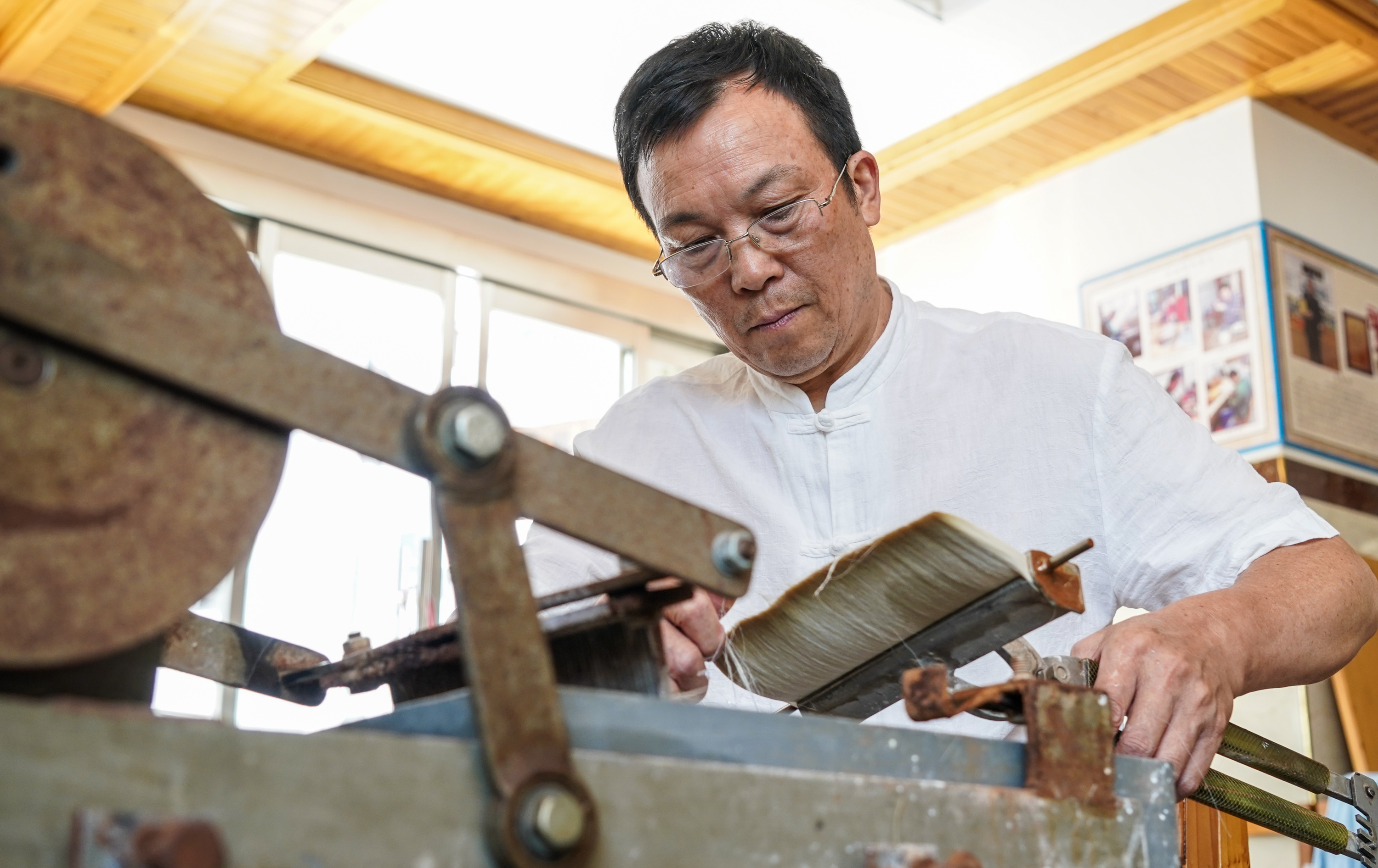 As the inheritor of traditional skills of making Wengang Brush Pen, an intangible cultural heritage of east China's Jiangxi Province, Zhou not only inherited the traditional techniques but also innovated the methods of making brush pen. To better pass on the making techniques of brush pen, Zhou has endeavored to receive and train apprentices and the younger generation of his family.
