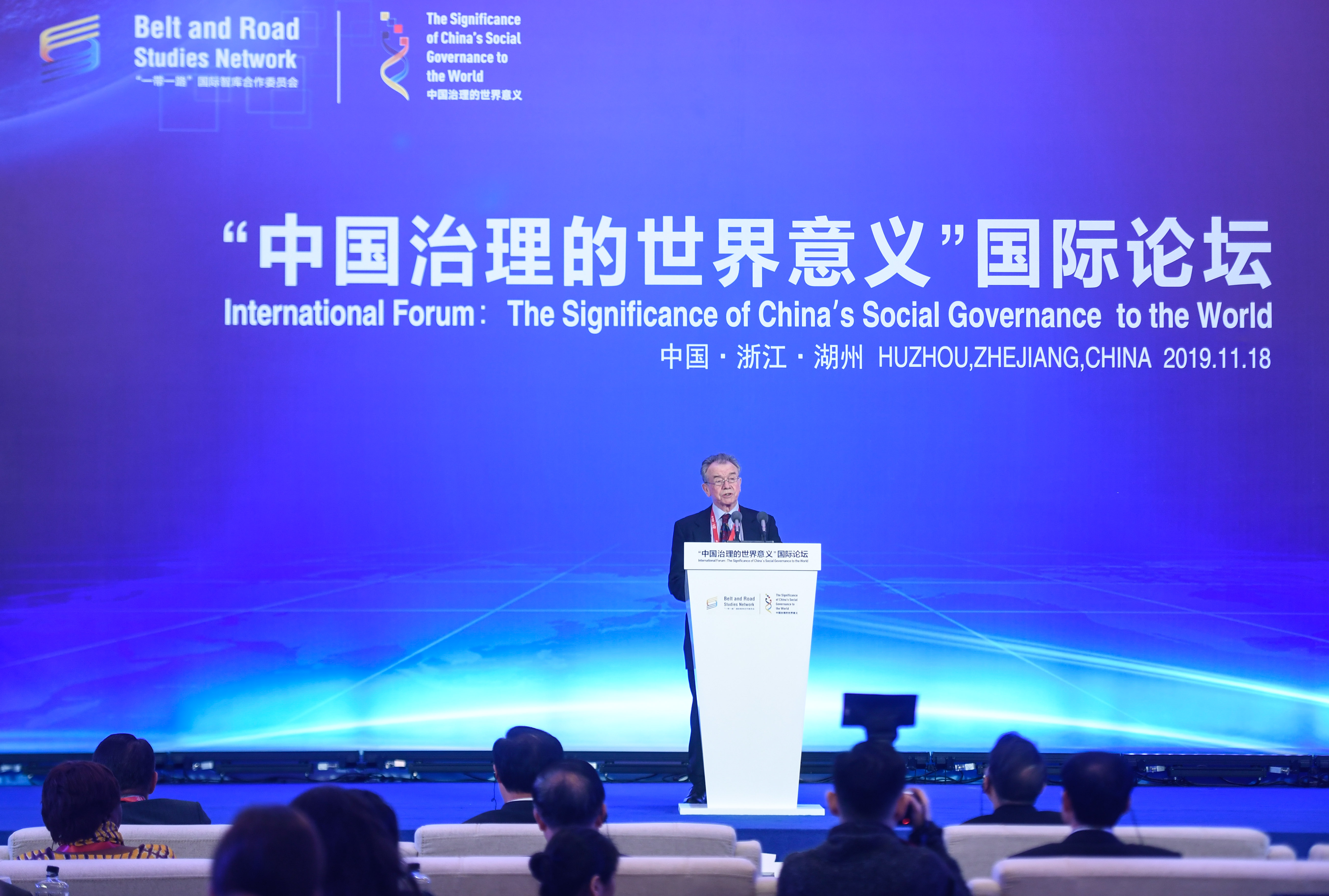 The "International Forum: The Significance of China's Social Governance to the World" is held in Huzhou, east China's Zhejiang Province, Nov. 18, 2019. (Xinhua/Huang Zongzhi)