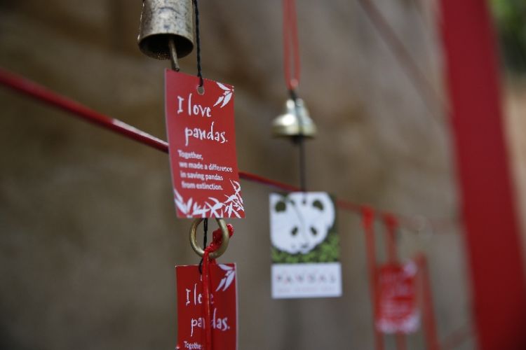 這是4月6日在美國圣迭戈動(dòng)物園“大熊貓友誼墻”拍攝的祝福簽。(新華社記者 李穎 攝)