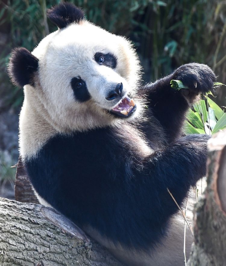 4月6日,在美國圣迭戈動(dòng)物園熊貓館,大熊貓“白云”在吃竹子。(新華社記者 李穎 攝)