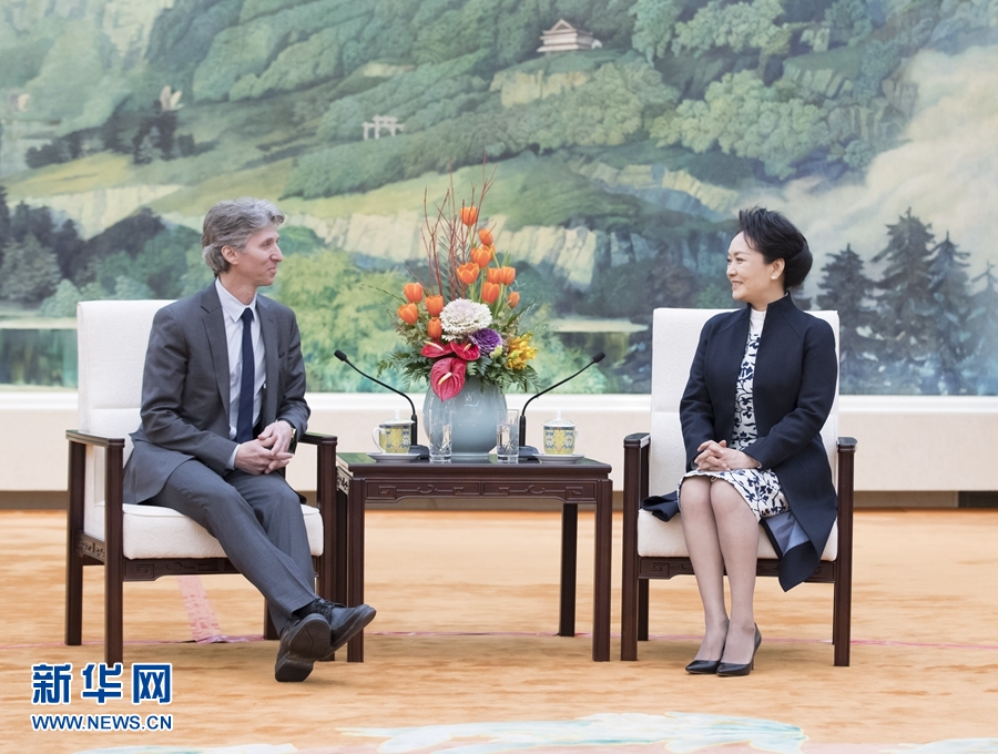 1月8日,國(guó)家主席習(xí)近平夫人彭麗媛在北京會(huì)見(jiàn)美國(guó)茱莉亞學(xué)院院長(zhǎng)沃澤爾。 新華社記者 王曄 攝