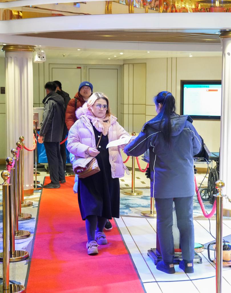 来自上海的李琳女士2月8日成为爱达邮轮的第100万名旅客。新华社记者丁汀 摄