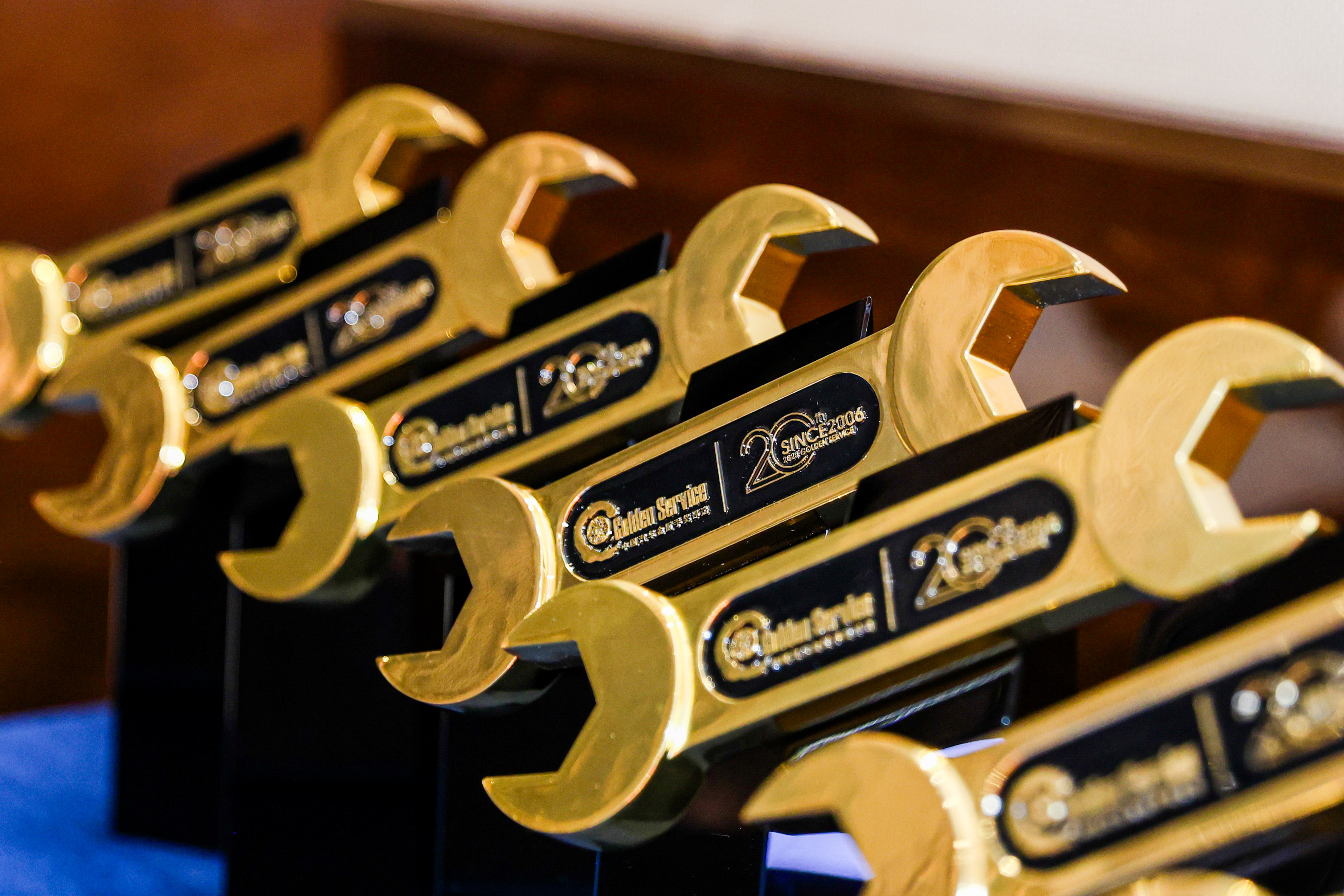 二十年中,有很多秉持长期主义的经销商、服务商,他们以客户为中心,凭借专业的技师团队、专业标准的服务流程、专业的工具、专业的原厂备件、专业的质保,以多年打造的原厂价值为用户提供了超越期待的服务体验,他们与品牌、与汽车服务行业共成长,已经成为了行业的标杆。为致敬他们对品质服务的坚守,大会举办本次“中国汽车金扳手奖20周年·服务标杆店”活动。历经主机厂推荐、行业专家评选及终审等环节,最终共有来自7个品牌的7家经销商荣获“中国汽车金扳手奖20周年·服务标杆店”荣誉称号。