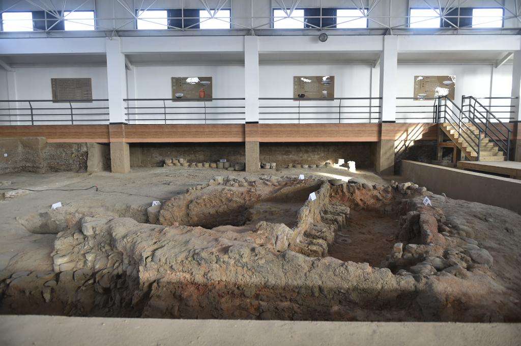 12月26日在河北省曲阳县灵山镇拍摄的定窑作坊遗址展馆内景。
