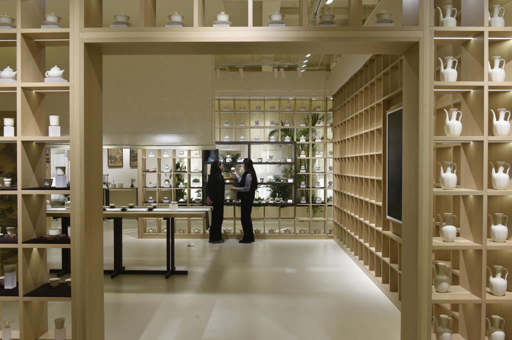 这是12月25日在河北省曲阳县拍摄的一家定瓷生产企业的展厅。