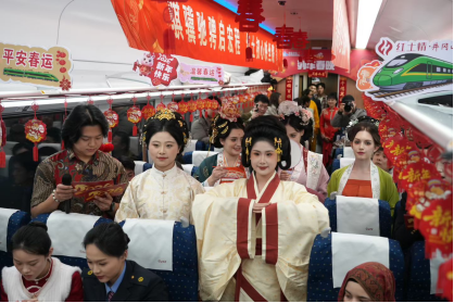 本届列车春晚围绕“铁路连通世界,文化共迎新春”这一主题,精心设计了融合中国传统文化、铁路精神、江西本土风情、国际友谊等内容的节目,通过百米车厢,让中外青年共演、共赏、共情,在旅途中搭建起跨文化对话的桥梁,营造开放包容、互学互鉴的美好氛围。