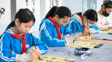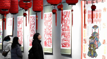 1月8日,游客在坡阳古街一家传统手工艺店里选购商品。