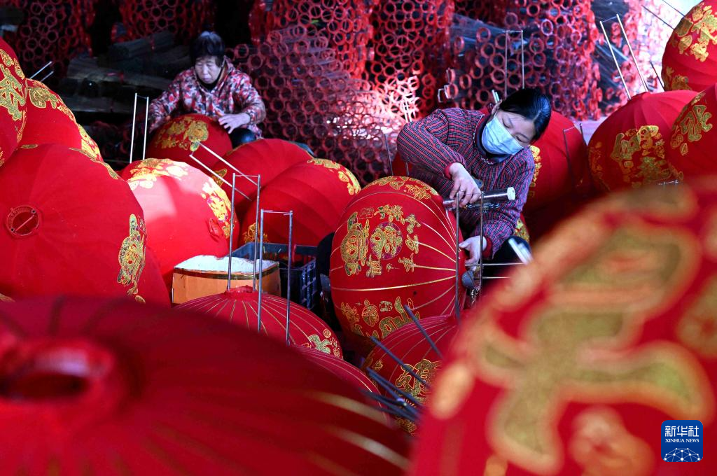 岁末年初,河北省石家庄市藁城区屯头村内一派繁忙景象,当地村民赶制藁城宫灯,供应春节市场。藁城宫灯是河北省级非物质文化遗产,目前已有18个系列300多个品种,产品远销全国各地。