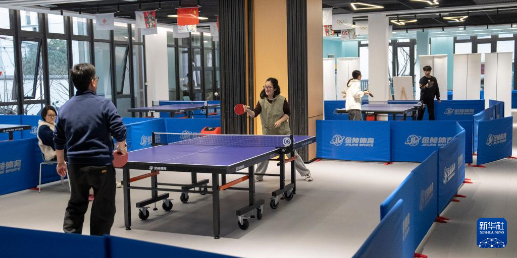 1月18日,人们在苏州市工人文化宫健身楼内打乒乓球。