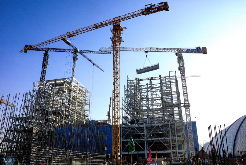 施工现场,低塔让高塔、后塔让先塔、动塔让静塔、轻车让重车、客塔让主塔,“高空交叉作业零碰撞,既安全又高效”,A、B标段单位项目负责人称赞道。