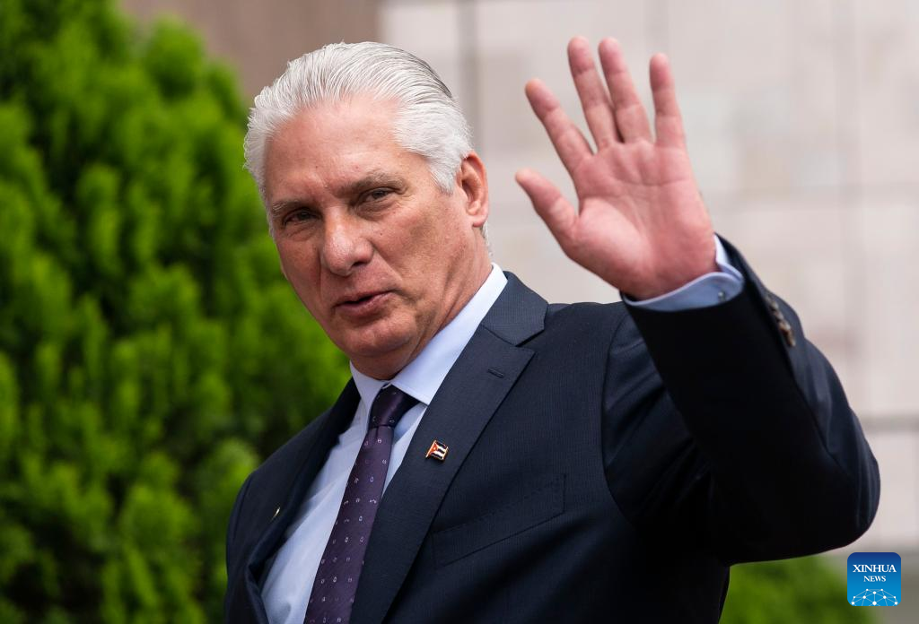 Cuban President Miguel Diaz-Canel waves at his arrival to the 9th Summit of Heads of State and Government of the Community of Latin American and Caribbean States (CELAC) in Tegucigalpa, capital of Honduras, April 9, 2025. The summit was attended by over a dozen heads of state and delegations from the bloc's 33 member countries. Honduras formally handed over CELAC's rotating presidency to Colombia. (Photo by David de la Paz/Xinhua)