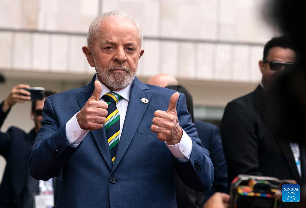 Brazilian President Luiz Inacio Lula da Silva reacts at his arrival to the 9th Summit of Heads of State and Government of the Community of Latin American and Caribbean States (CELAC) in Tegucigalpa, capital of Honduras, April 9, 2025. The summit was attended by over a dozen heads of state and delegations from the bloc's 33 member countries. Honduras formally handed over CELAC's rotating presidency to Colombia. (Photo by David de la Paz/Xinhua)