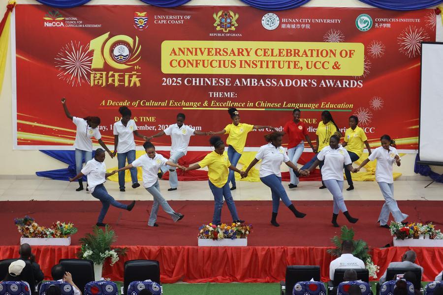 The Confucius Institute at the University of Cape Coast on Monday marked 10 years of Chinese language and culture education in the historical town of Cape Coast, capital of Ghana's Central Region.