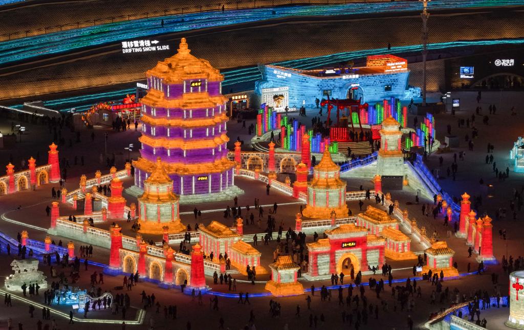 Tourists have fun at the Harbin Ice-Snow World in Harbin, northeast China's Heilongjiang Province, Jan. 5, 2026. (Xinhua/Wang Jianwei)