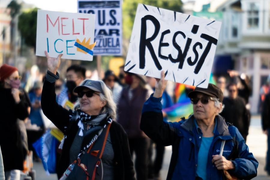 People attend a protest in San Francisco, California, the United States, on Jan. 10, 2026. (Photo by Ziyu Julian Zhu/Xinhua)