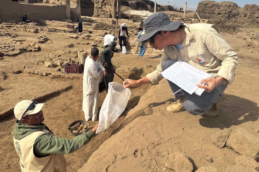 Chinese and Egyptian archaeologists work at the Montu Temple archaeological site in Luxor, Egypt, on Jan. 9, 2025. (Xinhua/Ahmed Gomaa)
