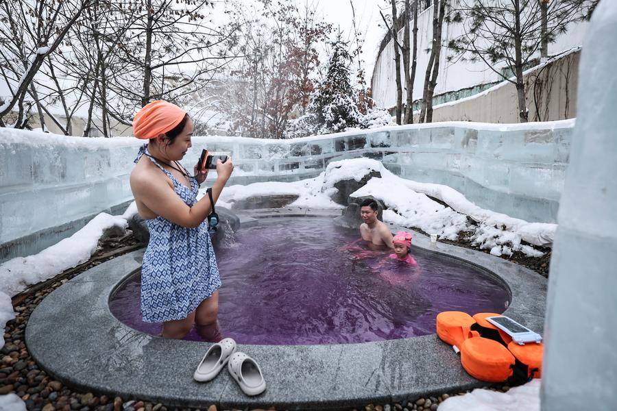 Visitors enjoy outdoor hot spring at a hot spring resort in Shenyang, northeast China's Liaoning Province, Jan. 9, 2026. (Xinhua/Pan Yulong)