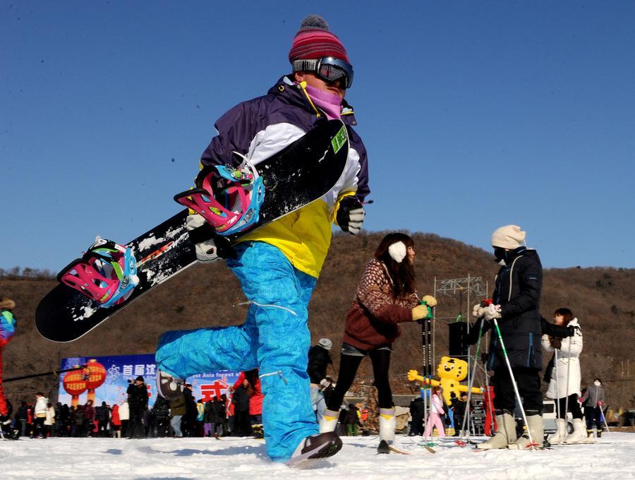 A citizen is about to go snowboarding at Dongbeiya International Ski in Shenyang, northeast China's Liaoning Province, Dec. 16, 2009. (Xinhua/Li Gang) ■