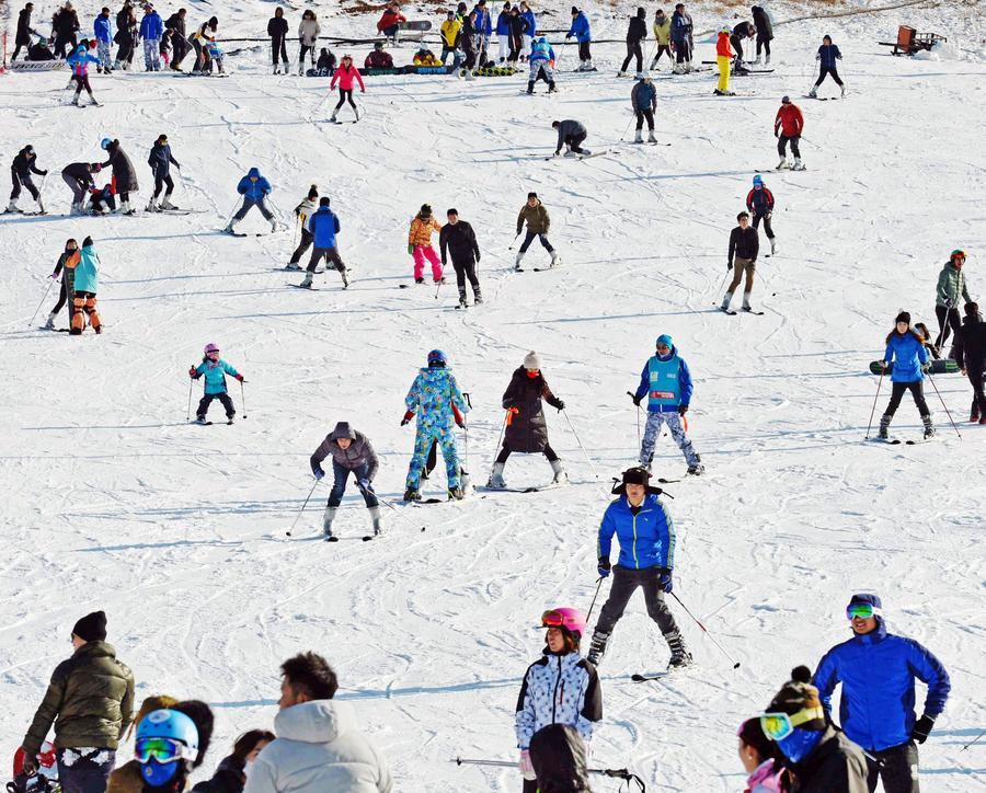 People enjoy skiing at Guaipo ski resort in Shenyang, northeast China's Liaoning Province, Nov. 27, 2016. (Xinhua/Long Lei)