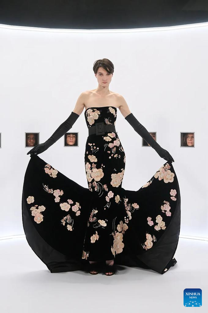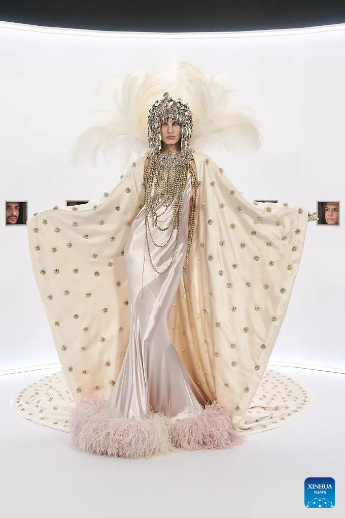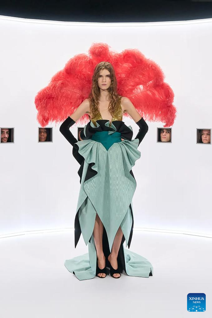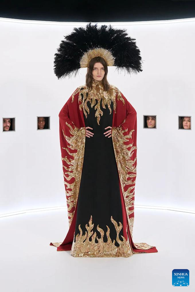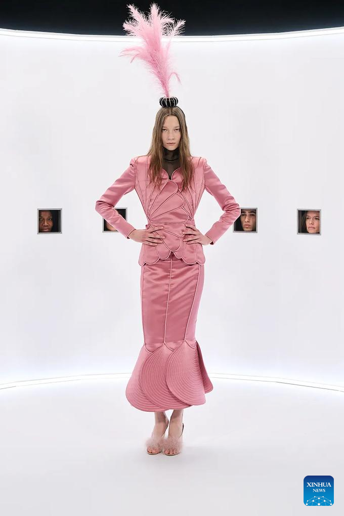 A model presents a creation by Alessandro Michele for Valentino during the Haute Couture Week Spring/Summer 2026 in Paris, France, on Jan. 28, 2026. (MeetEurope/Handout via Xinhua)
