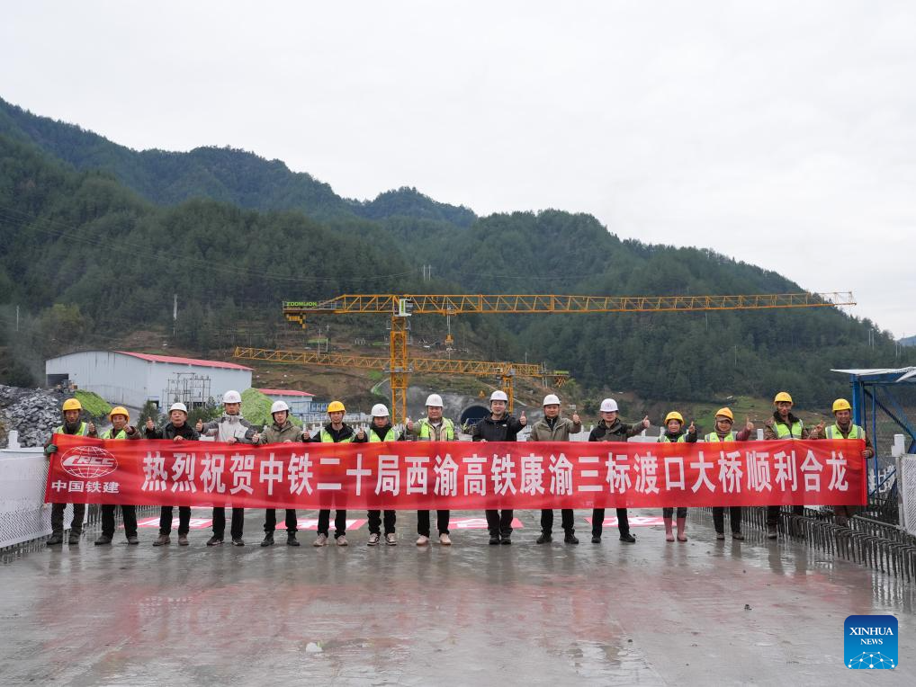 The Dukou Bridge, a key component of the 739-km Xi'an-Chongqing High-speed Railway with a design speed of 350 km/h, achieved closure on Friday. (Xinhua/Wang Xi)