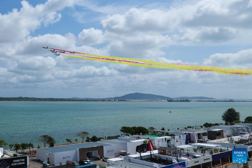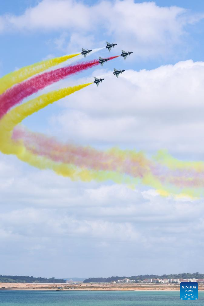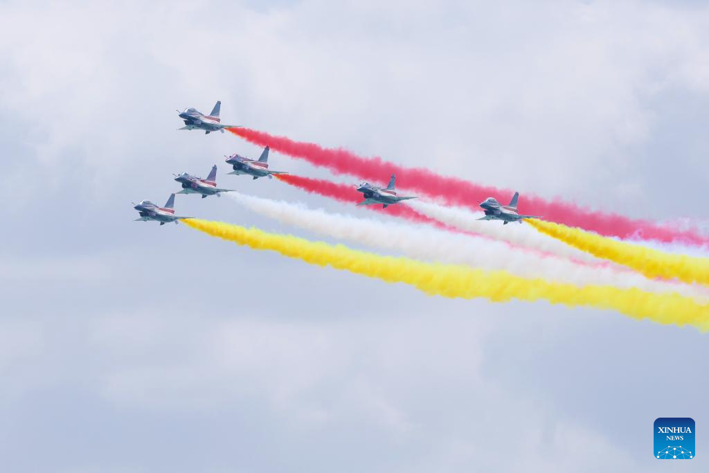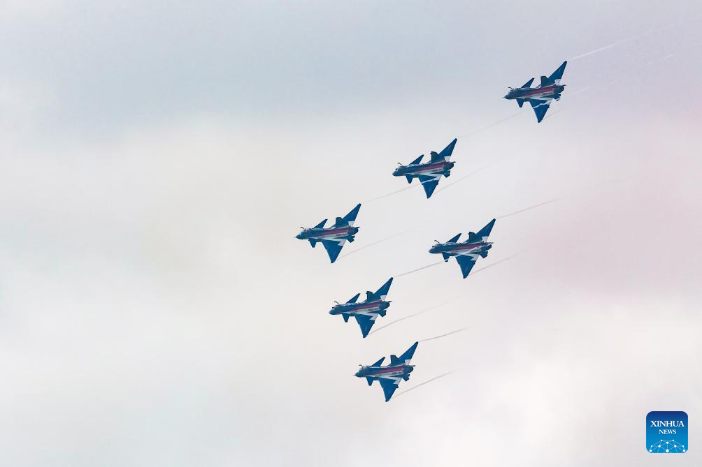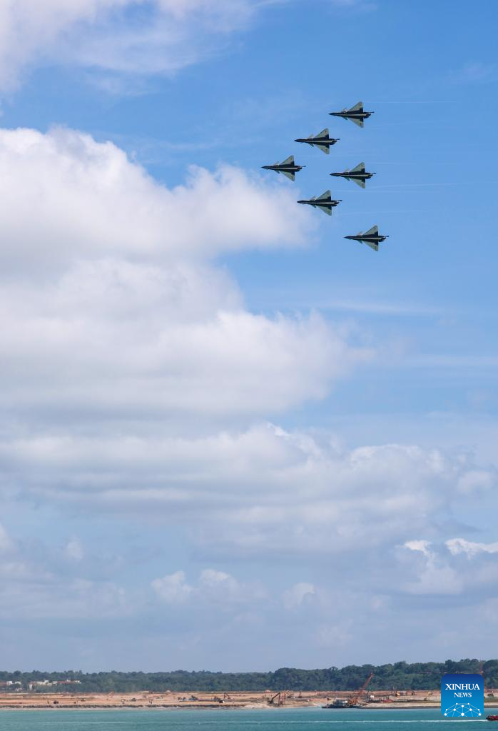 Aircraft of the Bayi Aerobatic Team of the Chinese People's Liberation Army (PLA) Air Force conduct training exercises for the 10th Singapore Airshow over the sea near Singapore's Changi Airport in Singapore, Jan. 30, 2026. (Photo by Zhu Jianghai/Xinhua)