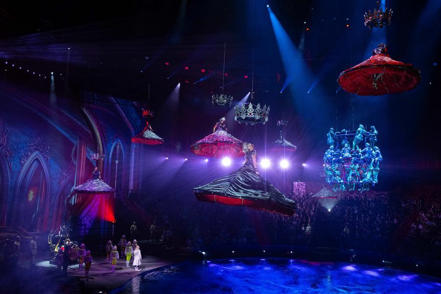 House of Dancing Water, an aquatic stage production featuring aerial acrobatics and theater technology, is staged in Macao, south China, May 7, 2025. (Xinhua/Cheong Kam Ka)