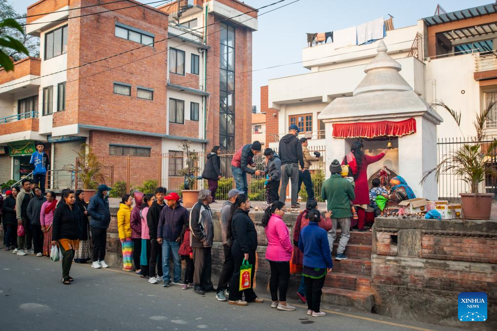Devotees wait in line to offer prayers to the Goddess of Knowledge Saraswati in celebration of Basanta Panchami or Shree Panchami festival in Lalitpur, Nepal, Jan. 23, 2026. The festival is observed by worshipping Saraswati, the Hindu goddess of knowledge, wisdom, learning, art, music and culture. (Photo by Hari Maharjan/Xinhua)