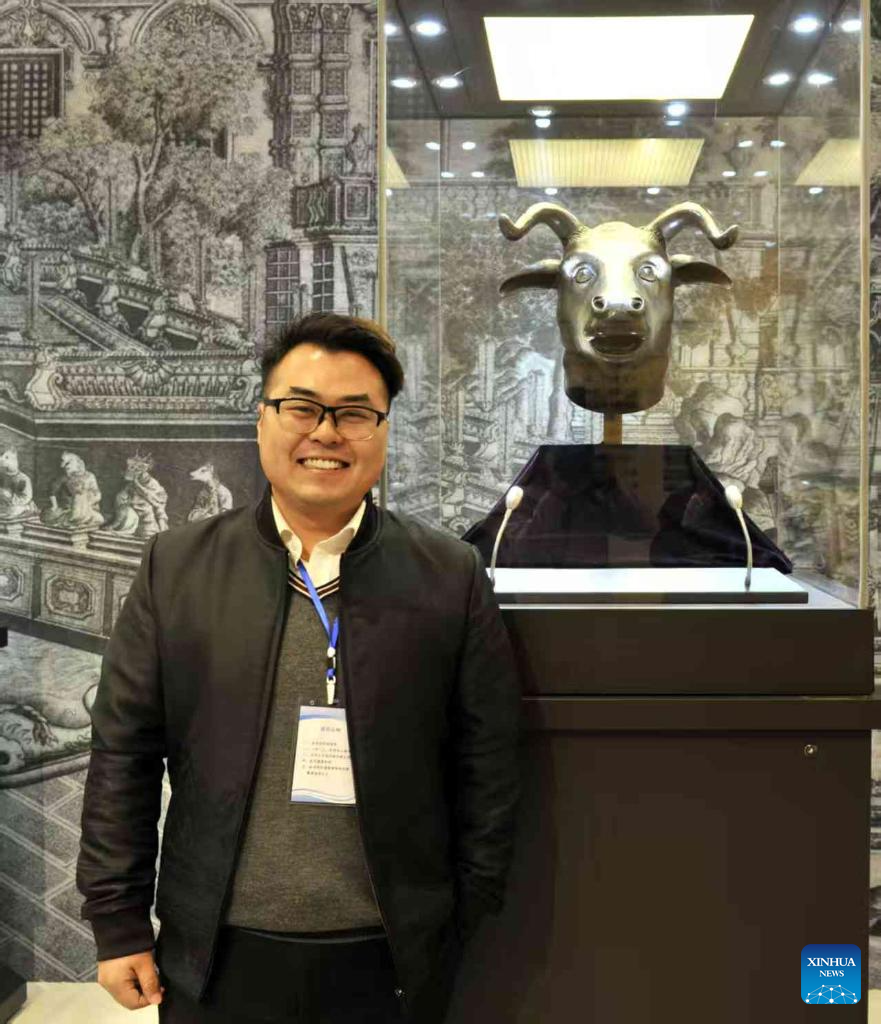 This file photo taken in February of 2016 shows Zhao Bin working during an opening activity of Weinan Museum in Weinan City, northwest China's Shaanxi Province. (Xinhua)