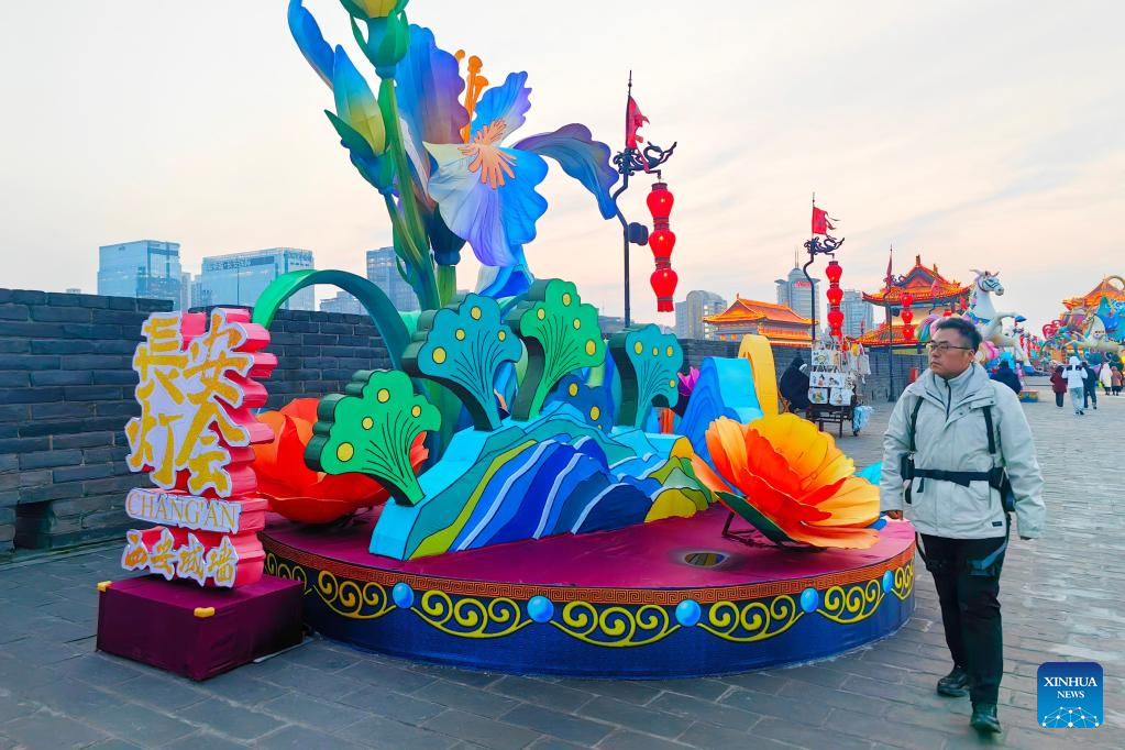 Zhao Bin looks at cultural and creative products at a cultural and creative store of the Xi'an City Wall in Xi'an, northwest China's Shaanxi Province, Jan. 4, 2026. (Xinhua)