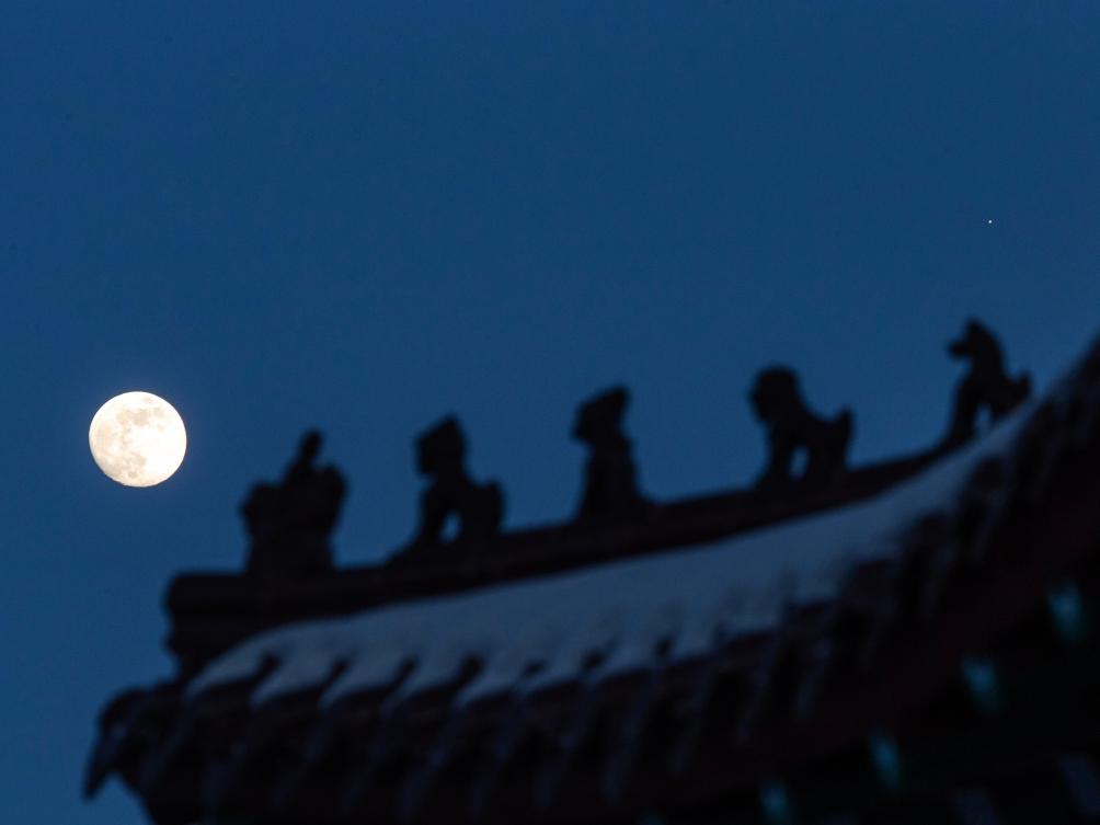 Conjunction of Jupiter and the waxing gibbous moon appears over the sky