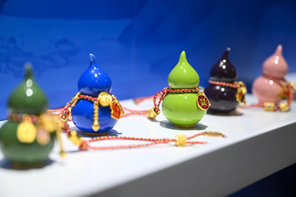这是展出的由残疾人创作的工艺品《颜色釉葫芦》(2月4日摄)。