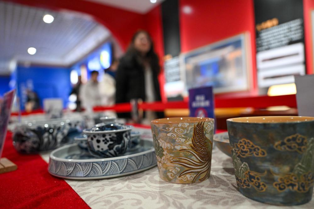 这是展出的由残疾人创作的陶瓷文创作品(2月4日摄)。