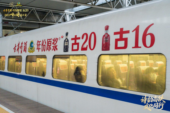 当350km/h的中国高铁邂逅千年诗词,当一杯醇香美酒唤醒心底的情怀,一场流动的雅集温暖启程。在古井贡酒·年份原浆古20《中国诗词大会》即将启幕之际,一场别开生面的“列车上的诗词大会”,让奔赴远方的旅途,化作一场穿越古今的诗意奔赴。作为中国老八大名酒之一,古井贡酒把诗词的雅趣带上列车,让乘客诗意大发!