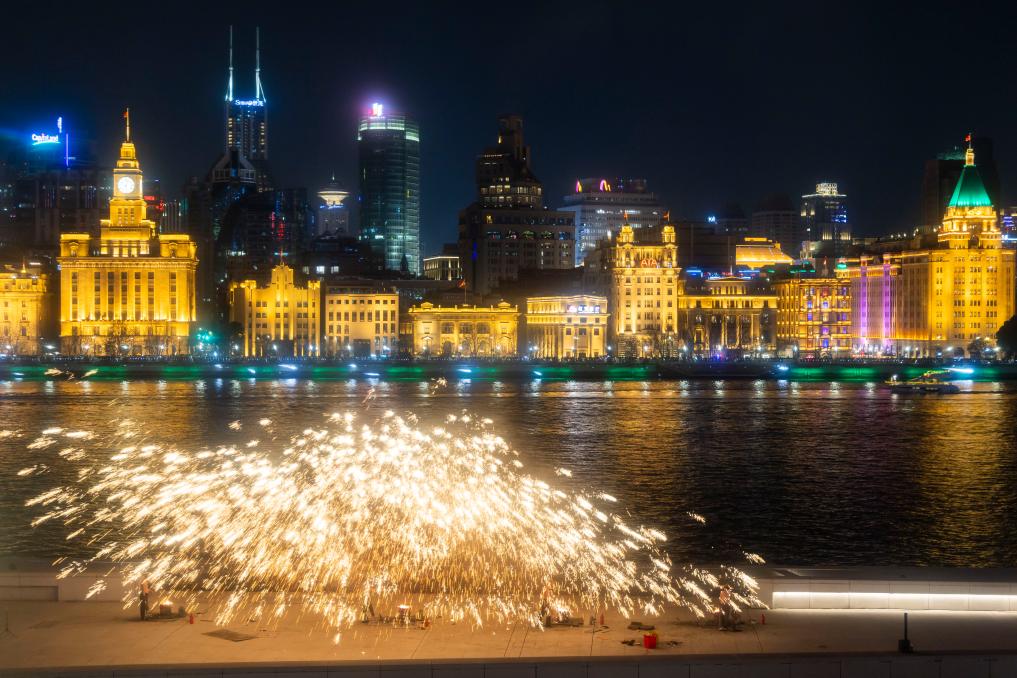 非遺“打鐵花”表演點亮上海
