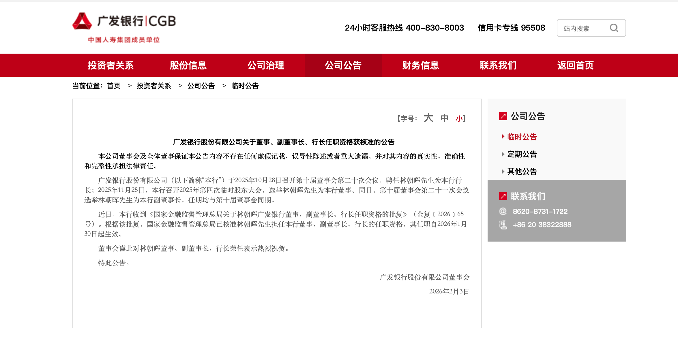 - 廣發(fā)銀行行長林朝暉任職資格獲批