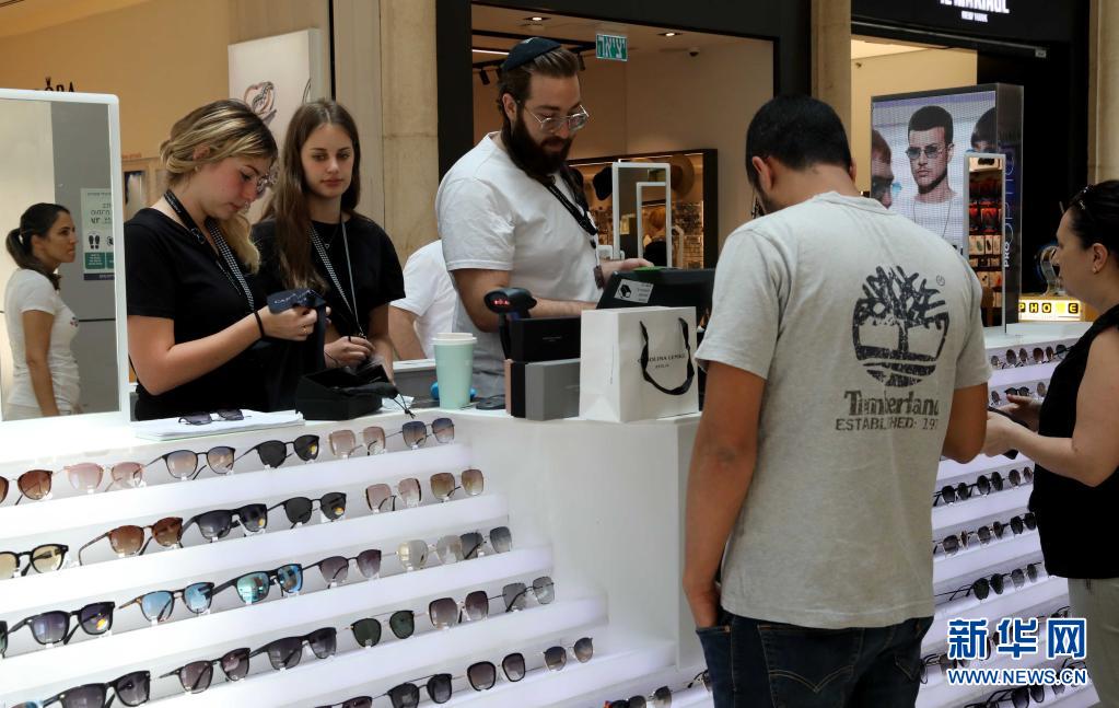 6月15日,人們在以色列中部城市莫迪因一家購物中心購物。