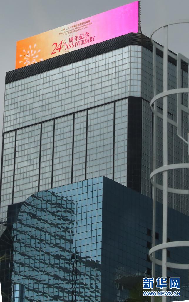 香港街頭建筑物上電子屏顯示的標(biāo)語(6月29日攝)。