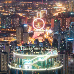 近日,位于天津市和平区津湾广场核心位置的津湾云顶高空观景台开始运营。游客可以登上300米高的楼顶,俯瞰天津中心城区。