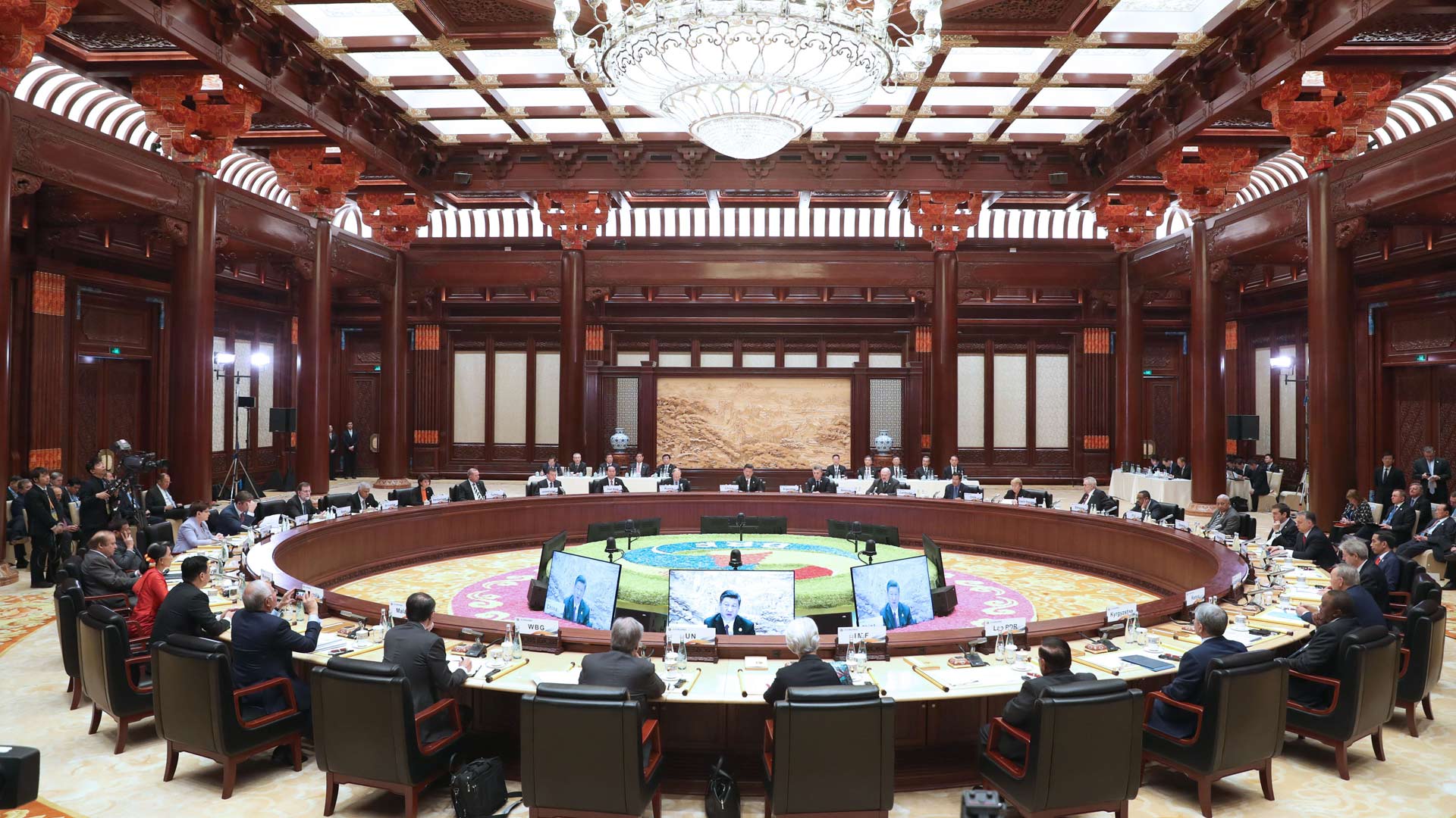 5月15日,“一帶一路”國際合作高峰論壇圓桌峰會在北京雁棲湖國際會議中心舉行,國家主席習近平主持會議并致開幕辭。新華社記者 鞠鵬 攝