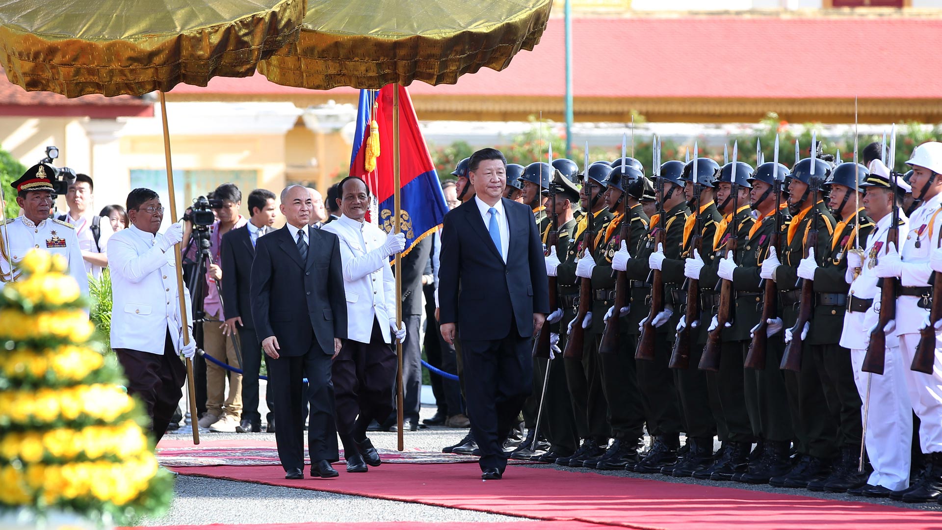 10月13日,國(guó)家主席習(xí)近平在金邊會(huì)見(jiàn)柬埔寨國(guó)王西哈莫尼。會(huì)見(jiàn)前,習(xí)近平出席西哈莫尼在王宮舉行的盛大歡迎儀式。 新華社記者 王曄 攝