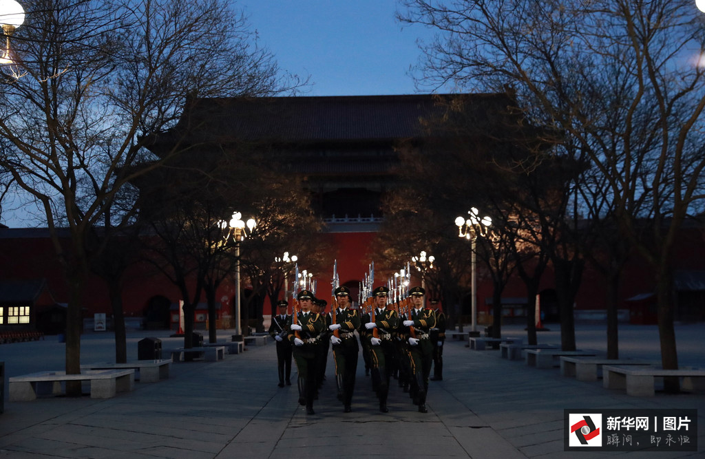 2017年3月5日,第十二屆全國人民代表大會第五次會議在人民大會堂開幕。凌晨4點(diǎn)的長安街,夜色還未褪去,位于故宮午門前一側(cè)的一座武警營區(qū)內(nèi),卻已是燈火通明。一群武警戰(zhàn)士穿起禮兵服、握緊鋼槍開始訓(xùn)練。晨曦微露,從金水橋到國旗桿下,138步、2分07秒、365天,無論雨雪風(fēng)霜、嚴(yán)寒酷暑,他們都守護(hù)著五星紅旗冉冉升起。這支部隊(duì)就是武警北京總隊(duì)天安門支隊(duì)國旗護(hù)衛(wèi)隊(duì)。