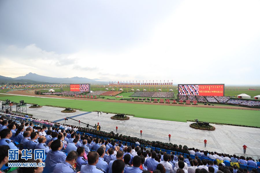 8月8日,內(nèi)蒙古自治區(qū)成立70周年慶祝大會(huì)在呼和塔拉內(nèi)蒙古少數(shù)民族群眾文化體育運(yùn)動(dòng)中心舉行。圖為大會(huì)現(xiàn)場(chǎng)。新華網(wǎng)記者 陳杰 攝