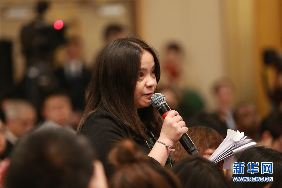 3月11日,十二屆全國人大五次會議新聞中心舉行記者會,邀請科技部部長萬鋼、秘書長徐建培就“2016年創(chuàng)新驅動發(fā)展戰(zhàn)略實施進展成效和2017年重點工作”的相關問題回答中外記者的提問。圖為成都商報記者提問。新華網(wǎng)/中國政府網(wǎng) 王健 攝