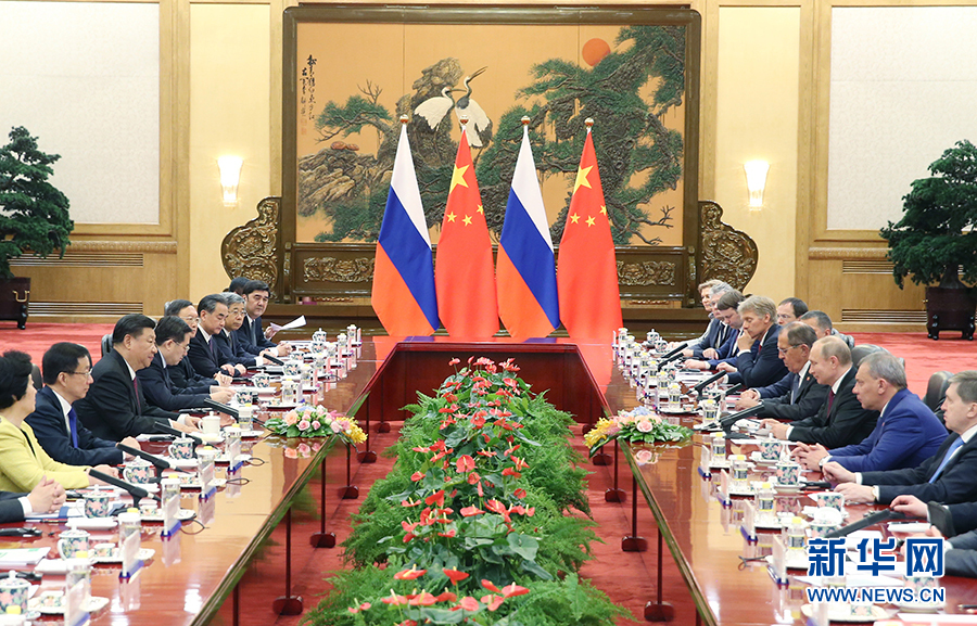 6月8日,國(guó)家主席習(xí)近平在北京人民大會(huì)堂同俄羅斯總統(tǒng)普京舉行會(huì)談。 新華社記者 姚大偉 攝