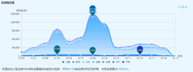 新華睿思大數(shù)據(jù)通過(guò)監(jiān)測(cè)新聞網(wǎng)站、論壇、微信、微博、APP、平媒6個(gè)信源,分析結(jié)果顯示,截至目前,全國(guó)兩會(huì)開(kāi)幕以來(lái),關(guān)于社會(huì)保障的話(huà)題共1094712個(gè)。