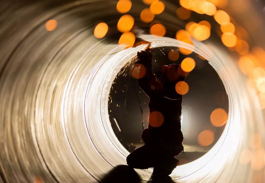 9月20日,河北秦皇島。工人正在維修鋼管。作者:王金磊