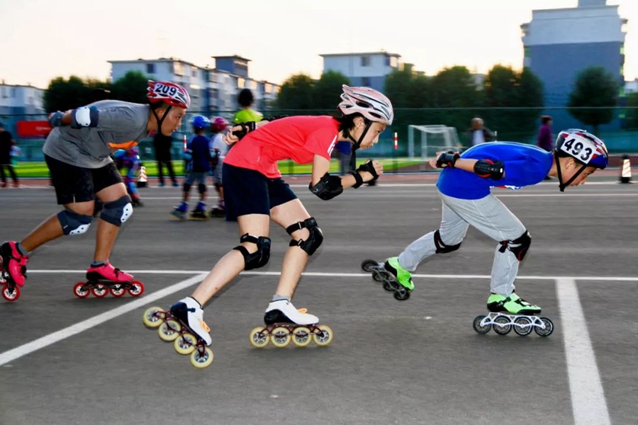 8月31日,遼寧沈陽。少年們在進行輪滑訓練,為冬季上冰打基礎(chǔ)。作者:周朋
